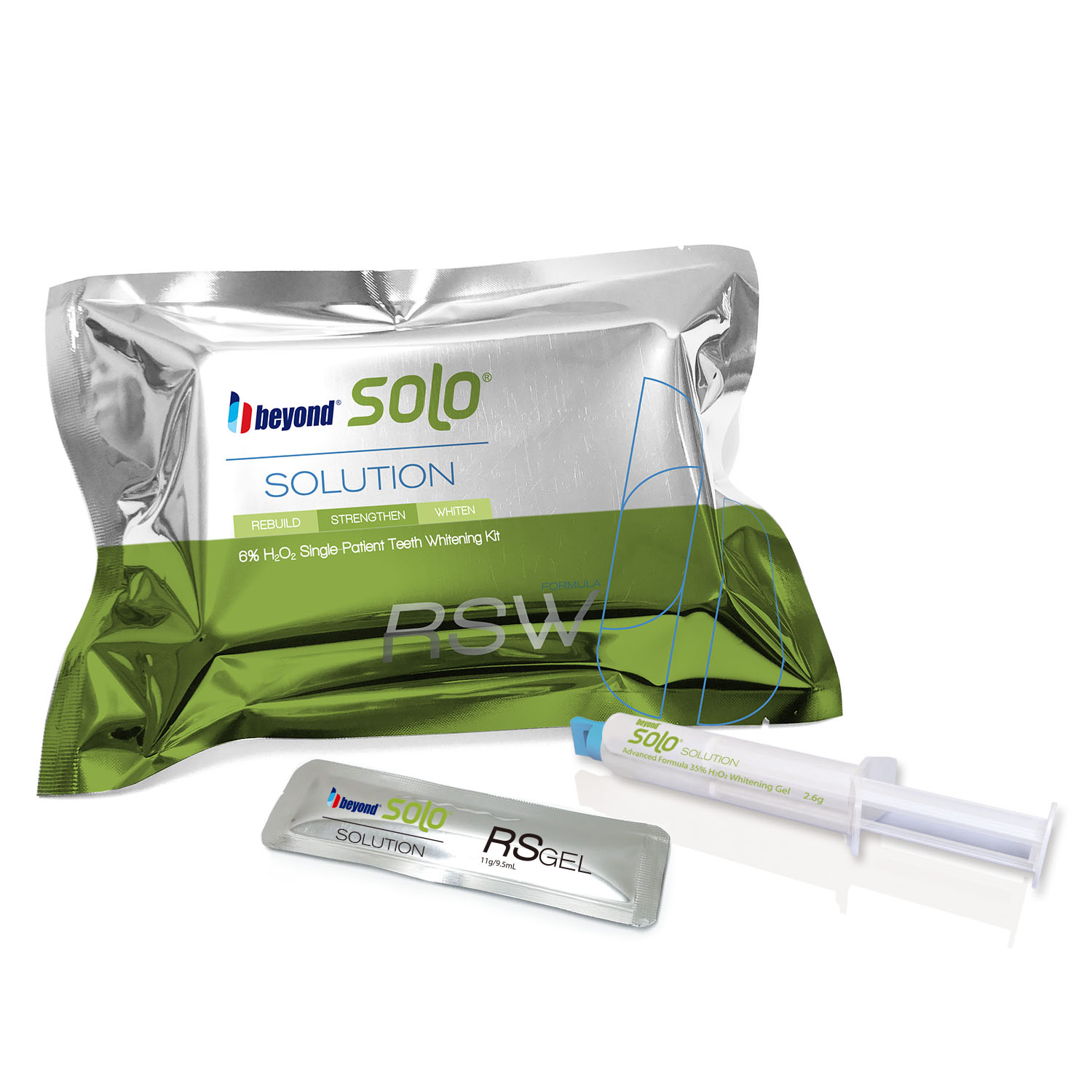 Zestaw wybielająco-regeneracyjny dla 1 pacjenta. Preparat SOLO wykorzystuje unikalną formułę fotoaktywatorów oraz H2O2 o stężeniu 6%.
